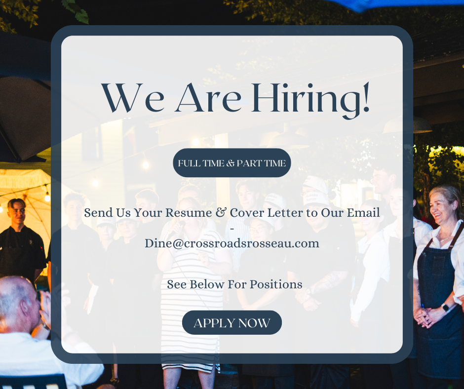 Crossroads Restaurant in Rosseau is looking for warm, professional, and service-driven individuals to join our front-of-house team.
