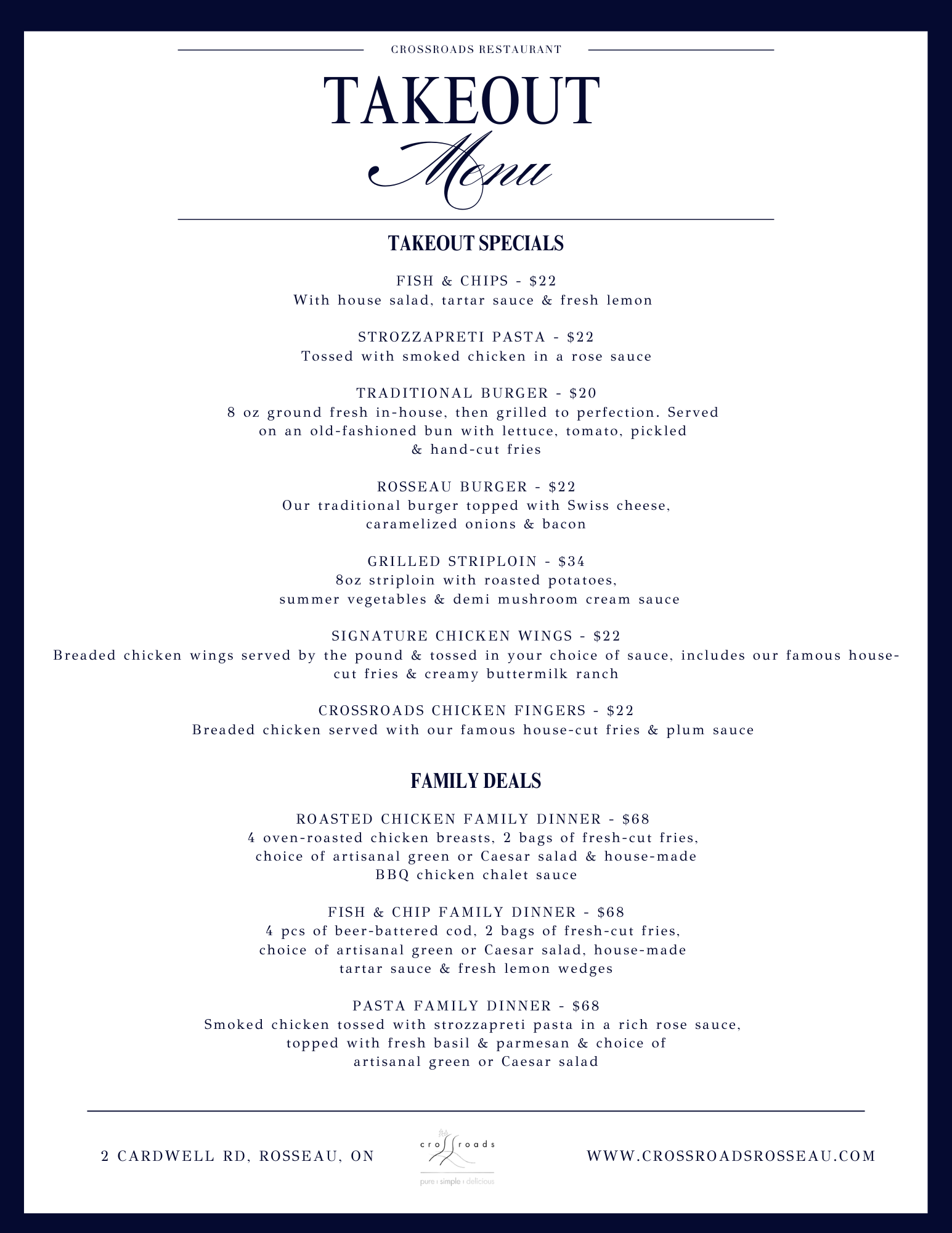 Crossroads Takeout menu